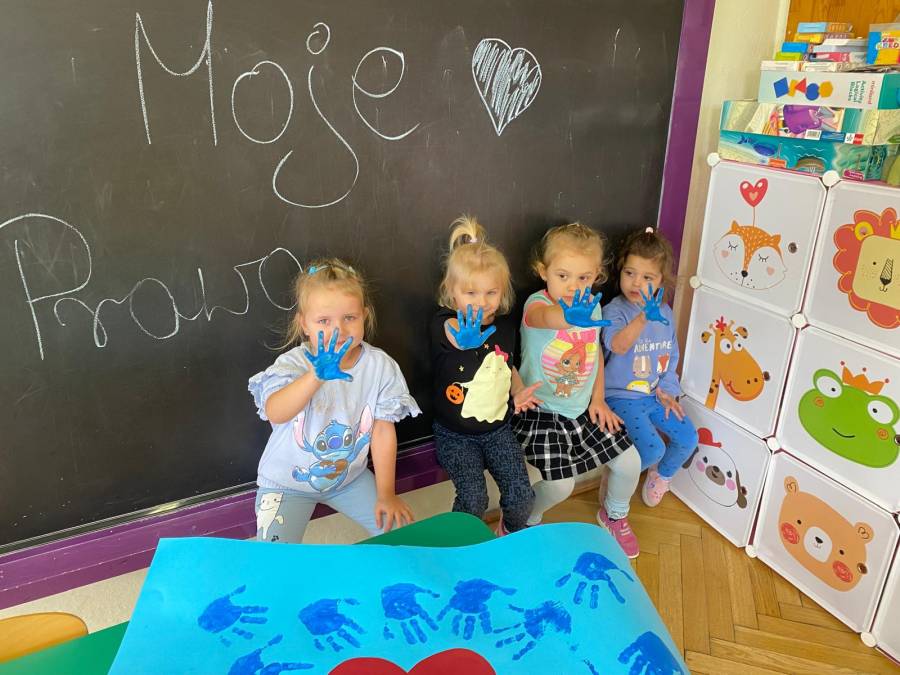 Dlatego w tym dniu nasze przedszkolaki przyszły ubrane na niebiesko, jako symbol solidarności ze wszystkimi dziećmi na świecie.