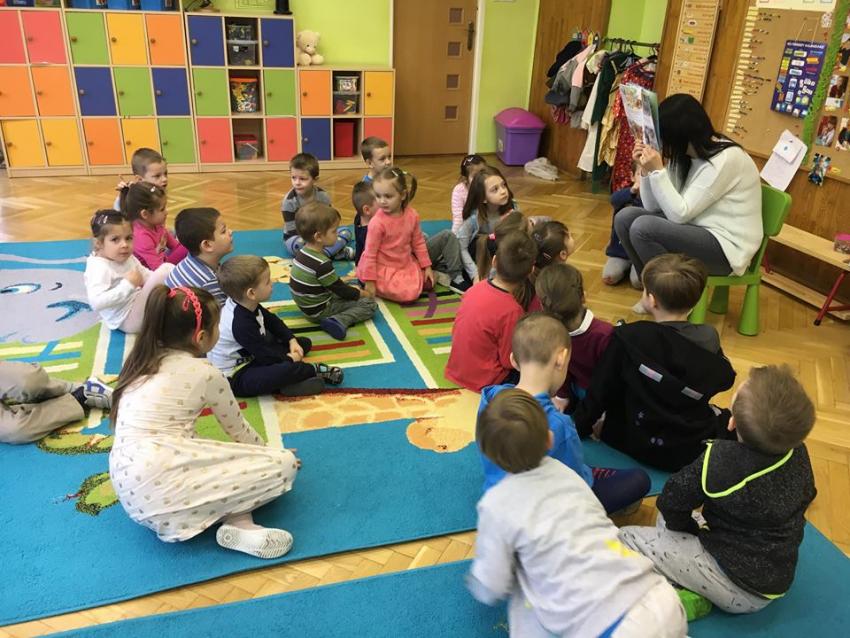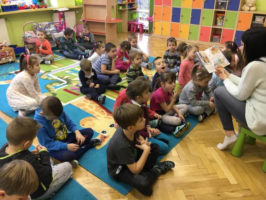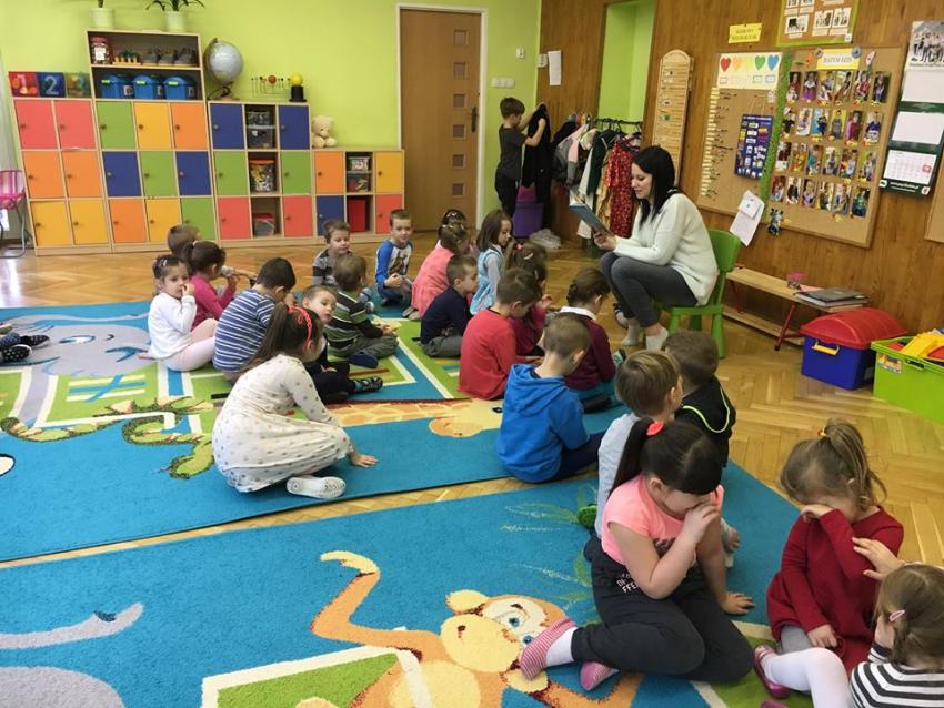 Systematyczny kontakt dziecka z książką aktywizuje jego rozwój intelektualny i emocjonalny, budzi wrażliwość estetyczną, sprzyja rozwijaniu postaw twórczych oraz wyzwala ekspresję dziecięcą. Nasze działania wspierane są przez zaproszonych do przedszkola gości. Nauczycielki codziennie czytają dzieciom ulubione bajki, baśnie, których słuchanie umila przedszkolakom pobyt w przedszkolu. Akcję zainaugurowała Mama Alana, Pani Natalia, która jako pierwsza zagościła w naszym przedszkolu i przeczytała bajkę pt. ,,Zakochany Kundel". Dzieci z wielkim zaciekawieniem wysłuchały bajki, a także oglądały kolorowe ilustracje. Wiek przedszkolny to najodpowiedniejszy czas, w którym powinniśmy rozwijać zainteresowania czytelnicze najmłodszych. Częste czytanie bajek wpływa znacząco na rozwój wyobraźni i aktywności intelektualnej dzieci, wzbogaca ich wiedzę o świecie jednocześnie kształtując wrażliwość moralną.