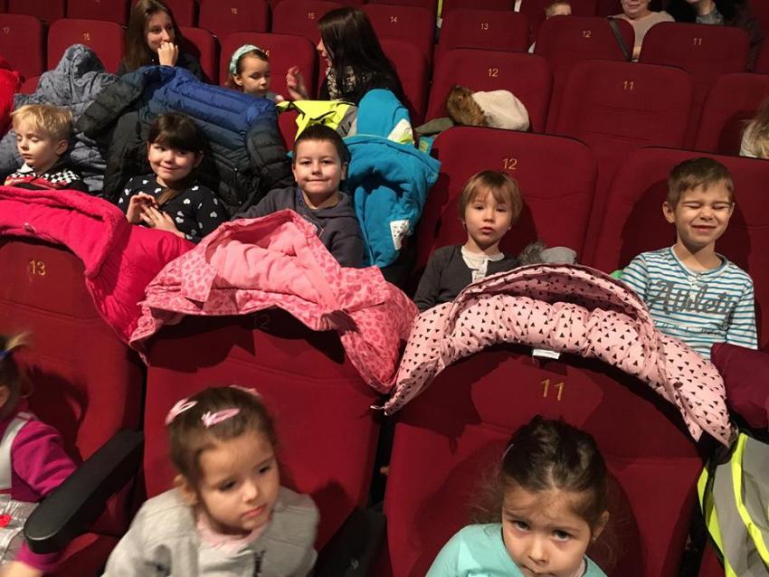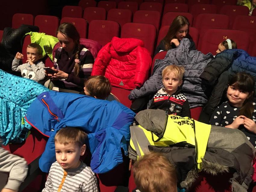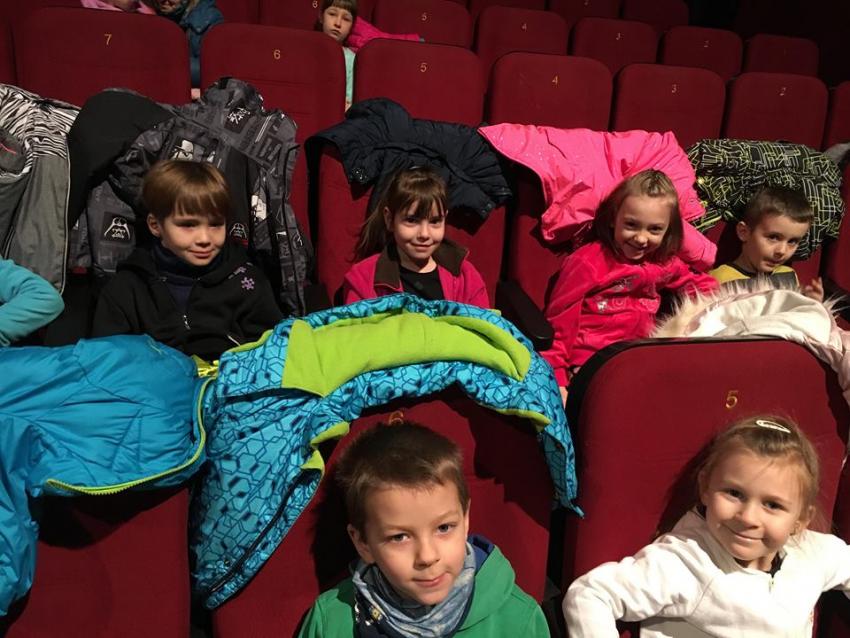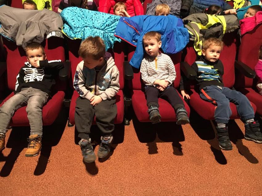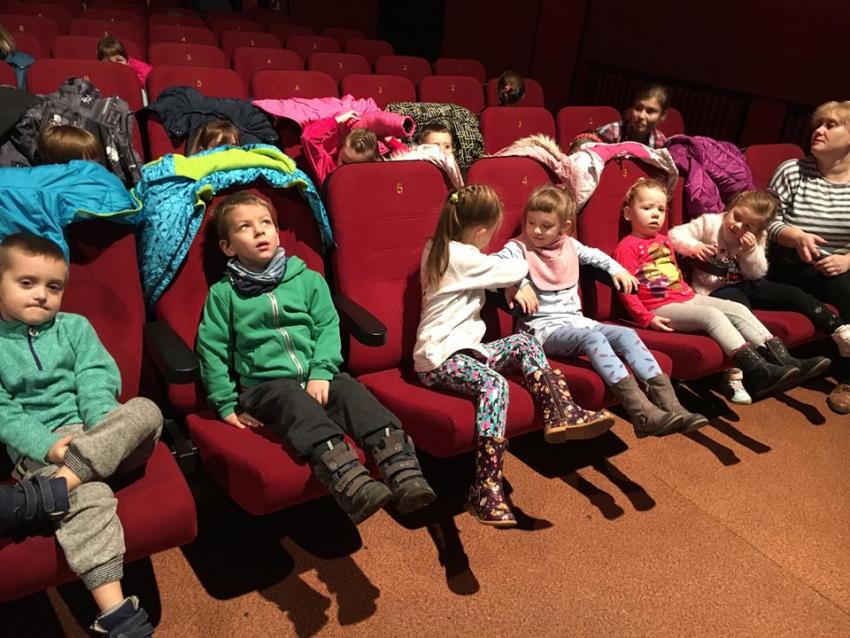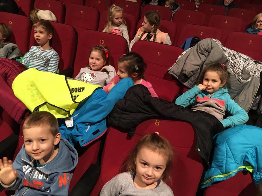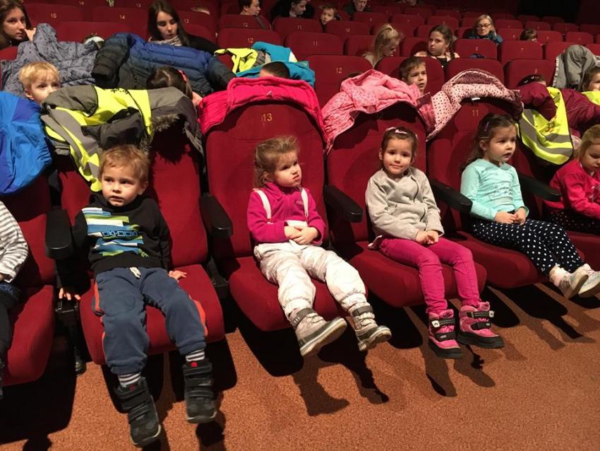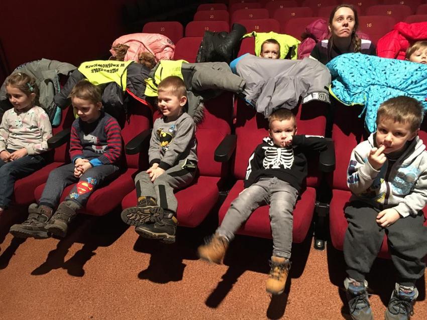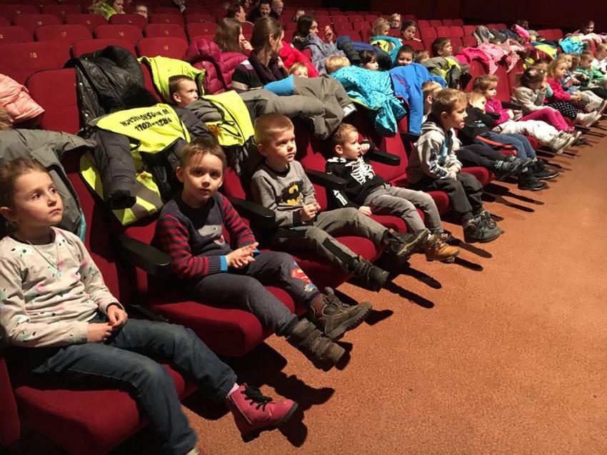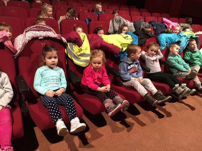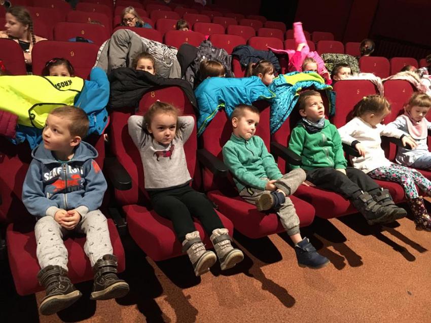 Dnia 24.01.2018r. dzieci z obu grup wybrały się na wycieczkę autokarową do Kłodzkiego Centrum Kultury na bajkę pt. ,,Dzielny Kogut Maniek". Animacja o koguciku, który musi odnaleźć w sobie bohatera, żeby uratować przed bankructwem rodzinne gospodarstwo. Mańka wraz z ekipą przyjaciół z kurnika oraz zabawnych jaj spotyka wiele zabawnych przygód. Dzieci były zachwycone. Uśmiechnięte buzie oraz pełne przejęcia komentarze były potwierdzeniem dobrze spędzonego przedpołudnia. Film swoją fabułą i akcją wywarł ogromne wrażenie na małych widzach. Wycieczka wzbogaciła dzieci o nowe, ciekawe doświadczenia– rozumienie wartości takich jak: dobro, prawda, przyjaźń. Dzieci nabyły umiejętności właściwych zachowań podczas pobytu w kinie, jak również wyzwalania względem rówieśników serdeczności i miłej atmosfery.