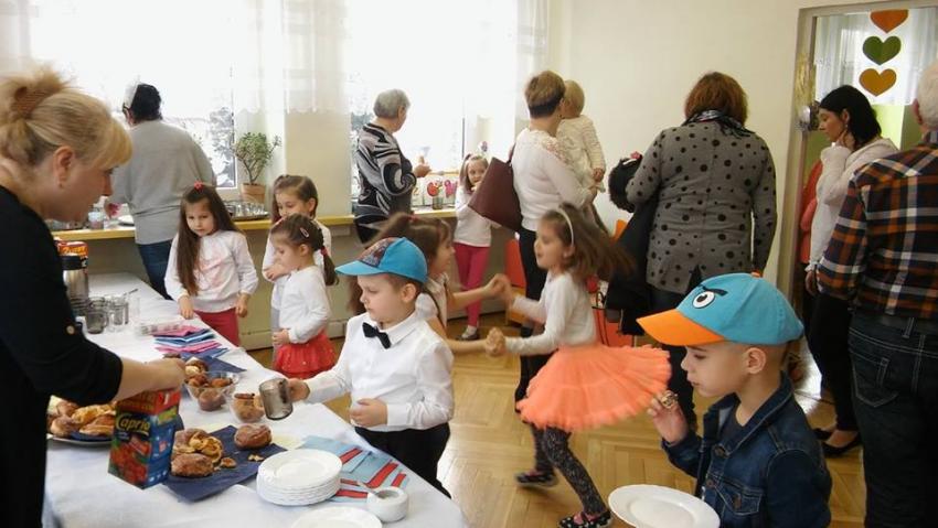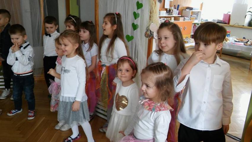 Przedszkolaki bardzo wdzięcznie i szczerze wyraziły swoje przywiązanie i szacunek kochanym Babciom i Dziadkom prezentując program artystyczny. Swoim najbliższym dzieci wręczyły niespodzianki przygotowane w przedszkolu wspólnie ze swoimi paniami. Uroczystość zakończono wspólną gościną przy stole zastawionym ciastaczkami kawką i herbatką.