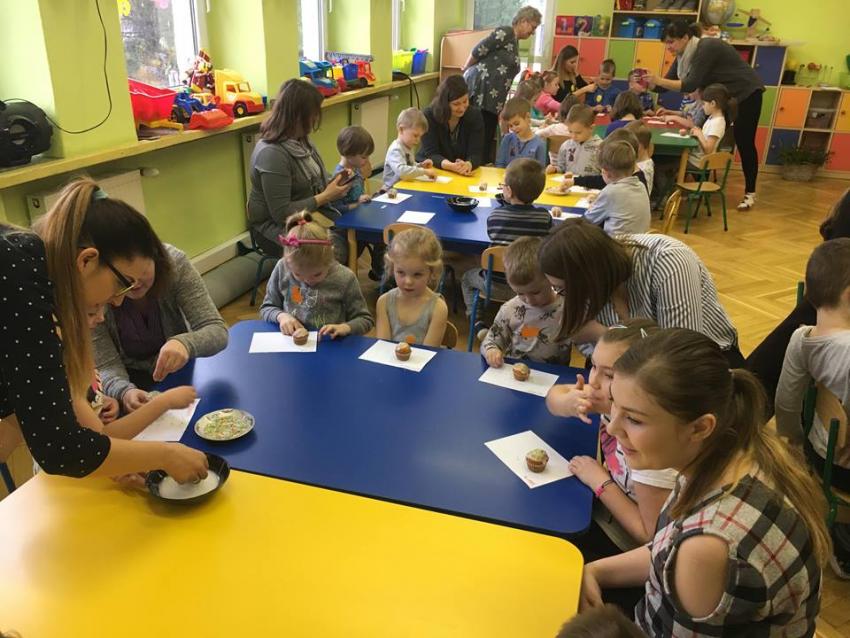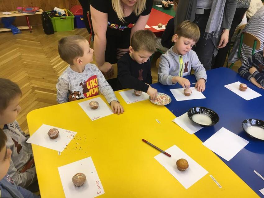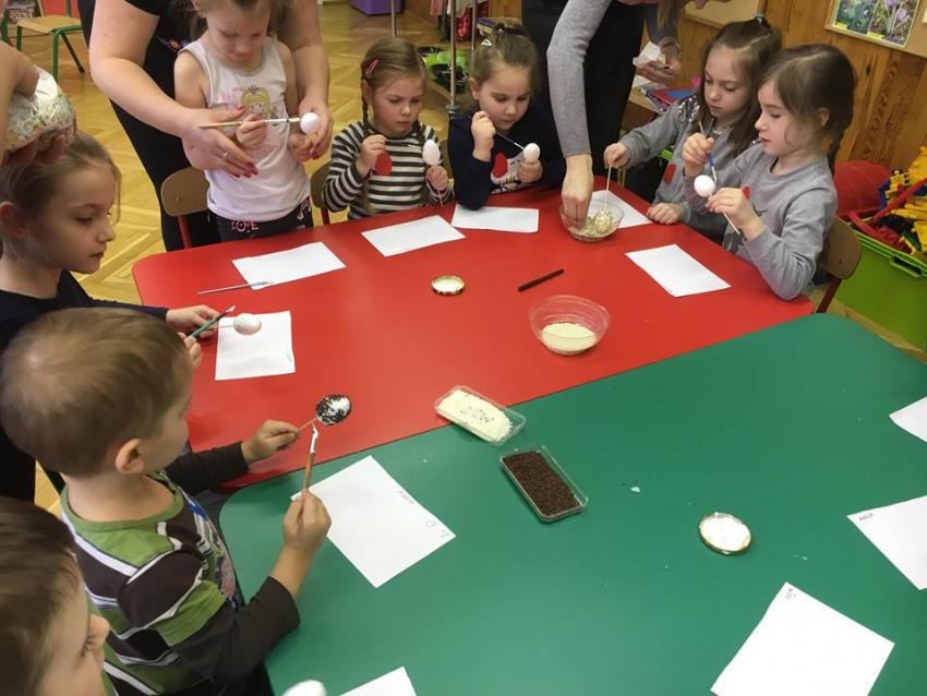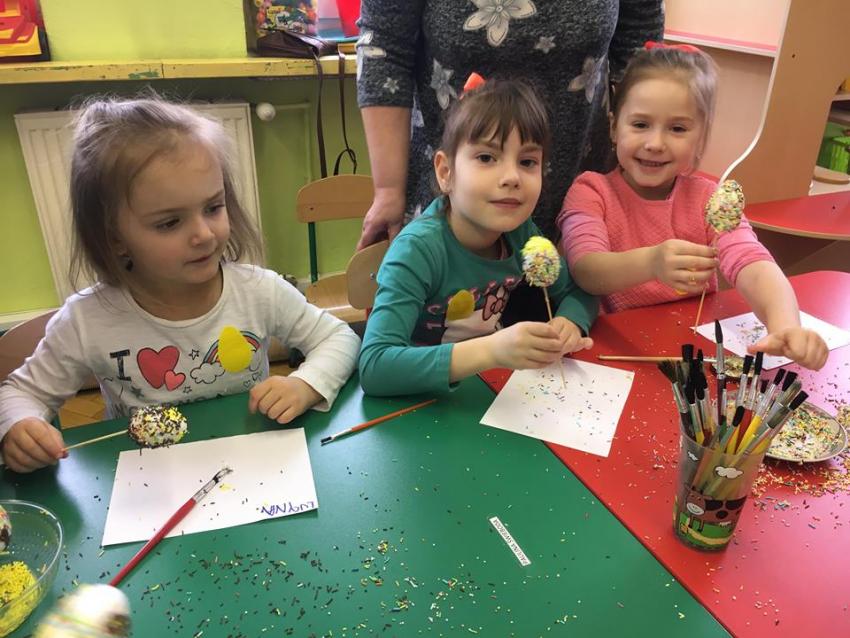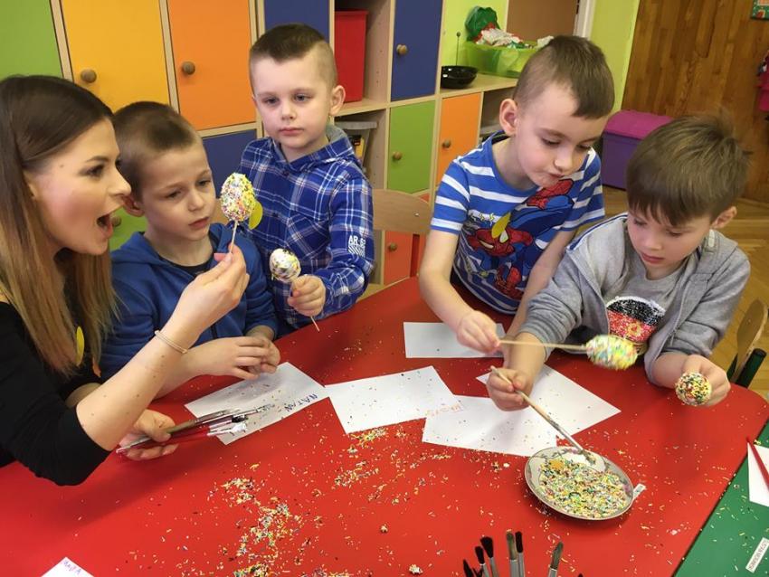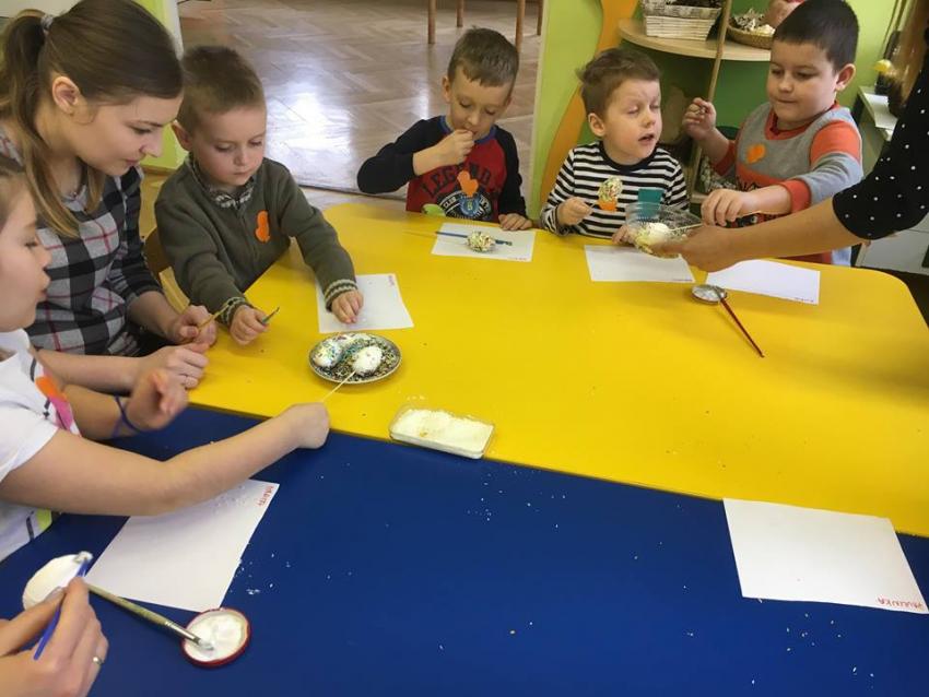 Właśnie z tej okazji zaprosiliśmy Rodziców dzieci na zajęcia otwarte, na których poznawaliśmy tradycje i zwyczaje świąteczne oraz przygotowywaliśmy ozdoby świąteczne. Na zajęciach przedszkolaki, przygotowanych różnorodnych materiałów plastycznych przy pomocy Rodziców, wykonały piękne wielkanocne dekoracje. Dzieci wykonały świąteczne babeczki, ozdobiły styropianowe jajeczka, stroiki a także wspólnie przystroiły duże papierowe jajka.