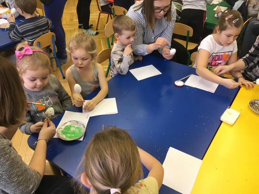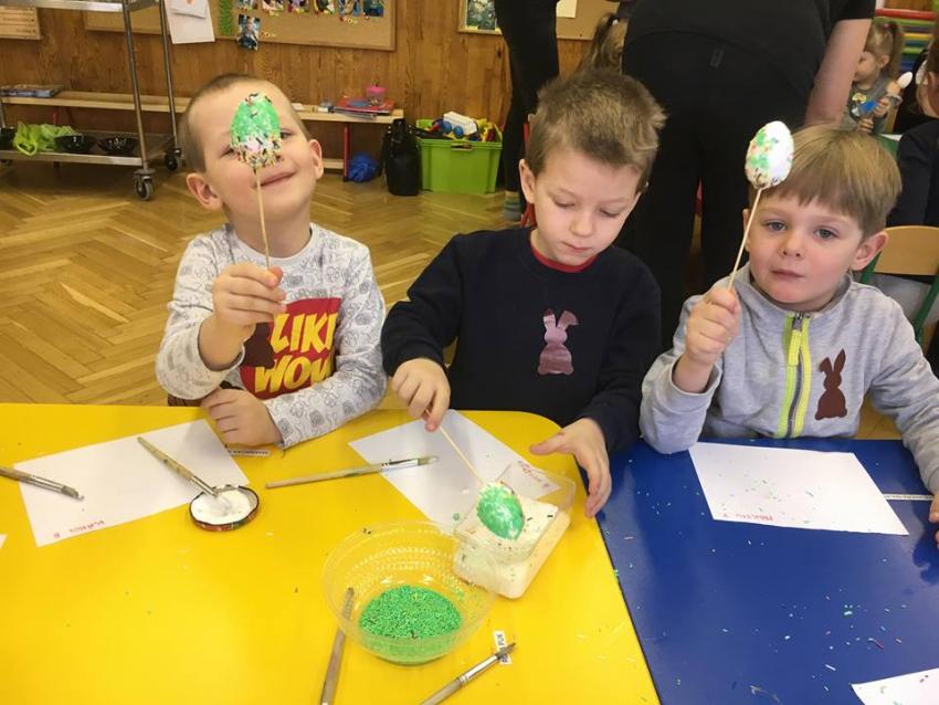 Spotkanie było doskonałą okazją dla Rodziców do zobaczenia swoich pociech podczas zajęć, miłego spędzenia czasu oraz wspólnej zabawy. Zajęcia przebiegały w miłej i serdecznej atmosferze, umiliły dzieciom oczekiwanie na święta i wprowadziły je w wielkanocny nastrój.