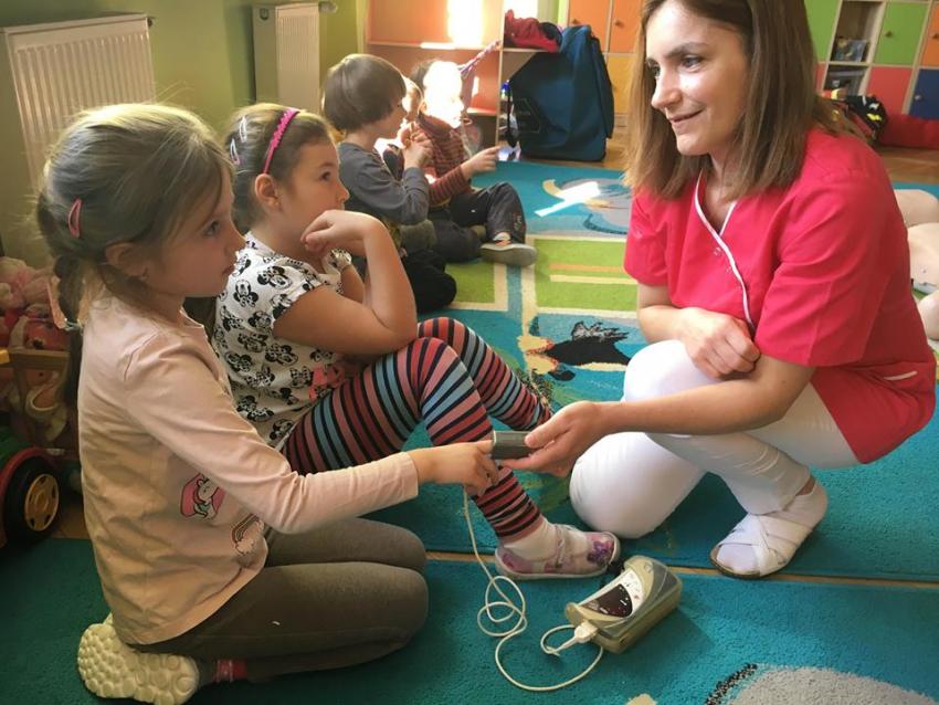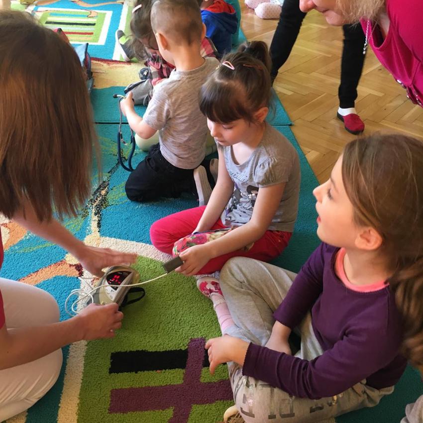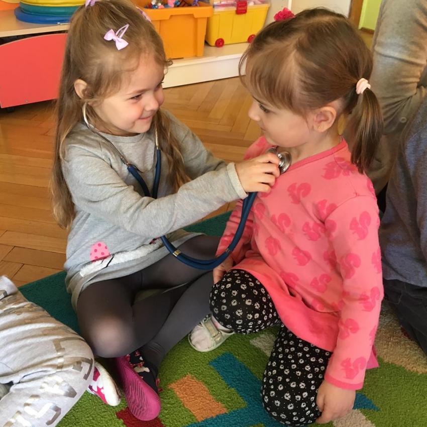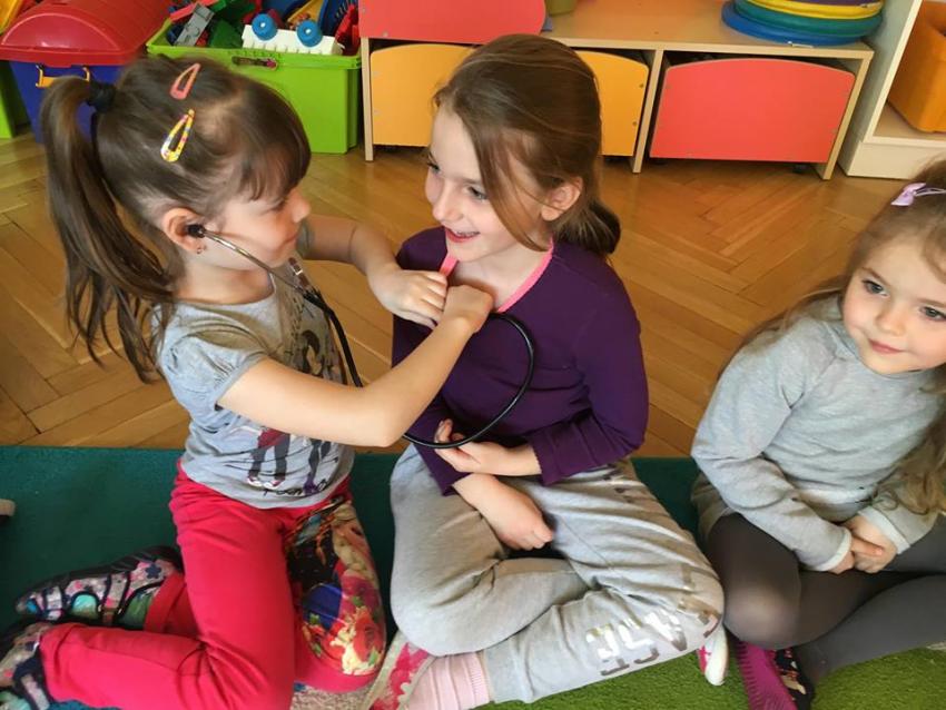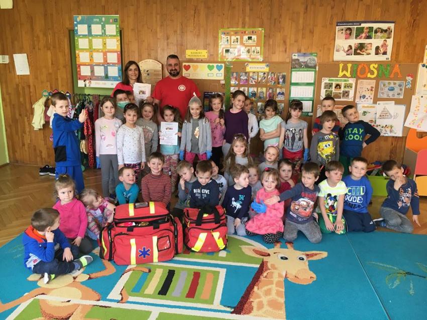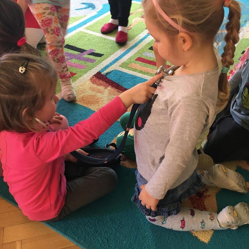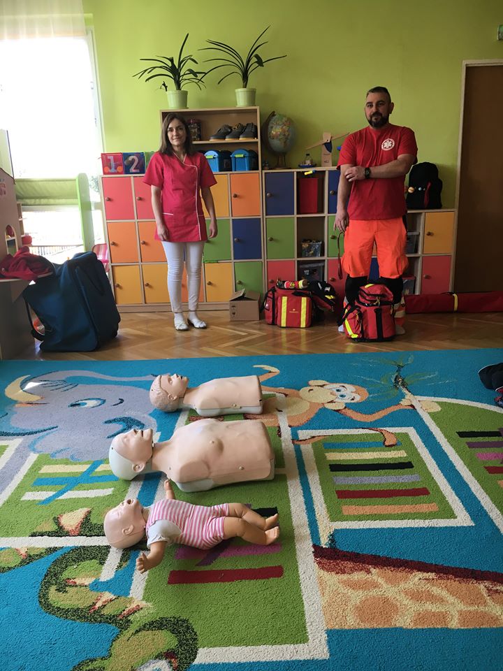 W piątek 06.04.2018r. gościliśmy w naszym przedszkolu rodziców Sary, tato jest ratownikiem medycznym a mama pielęgnierką. Dzieci miały okazję wysłuchać informacji na temat udzielania pierwszej pomocy. Przedszkolaki uczyły sie w jaki sposób można komuś pomóc zanim przyjedzie pogotowie ratunkowe. Jak należy sprawdzać przytomność osoby poszkodowanej oraz w jaki sposób wzywać pomoc. Na zakończenie spotkania przedszkolaki zadawały pytania dla Pani pielęgniarki dotyczące m.in. zachowania się podczas skaleczeń. Dzieki takiej lekcji dzieci nauczyły się wielu ważnych rzeczy, które w przyszłości być może przyczynią się do uratowania komuś życia. Naszym Gościom- Państwu Tomera bardzo dziękujemy za przybycie do naszego przedszkola!