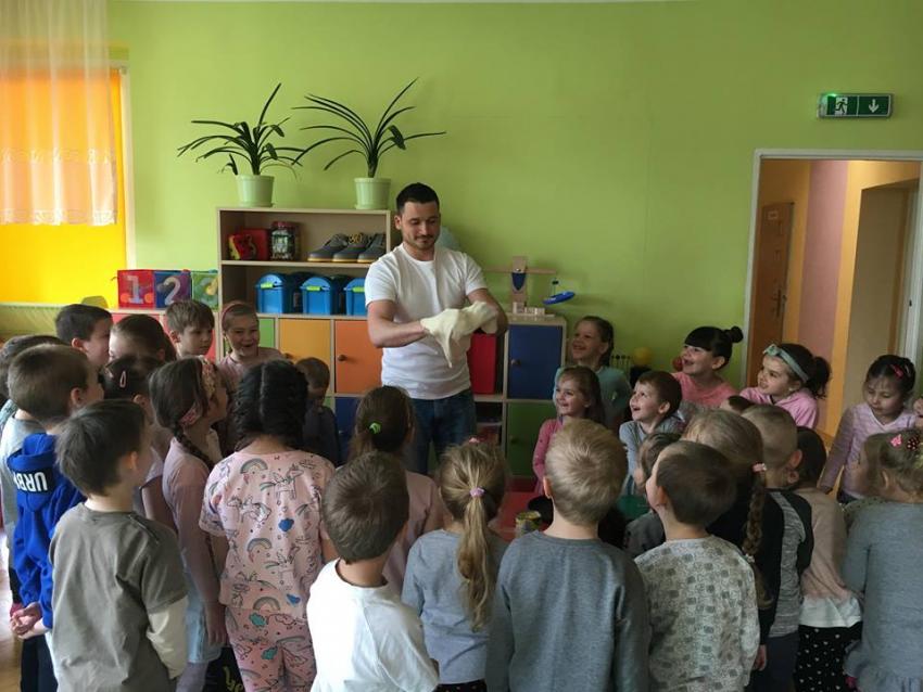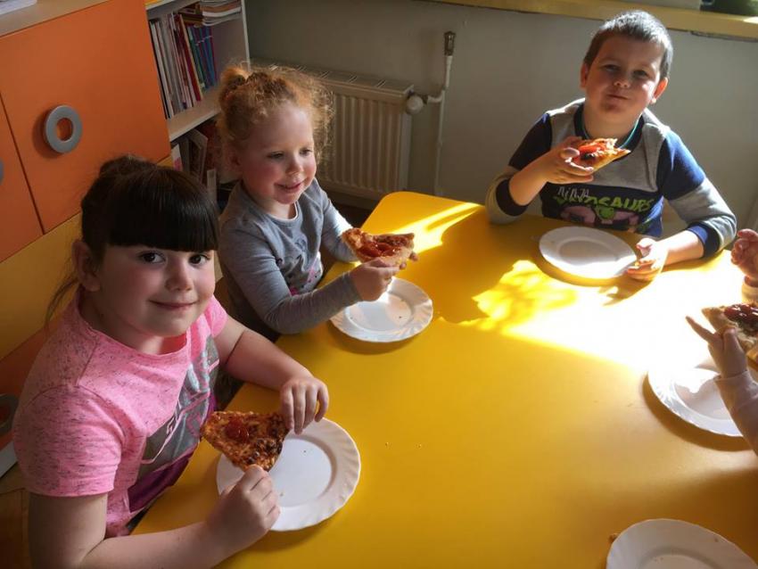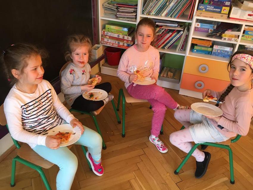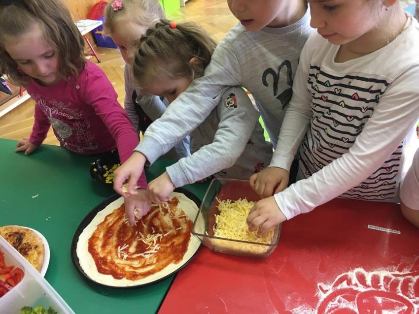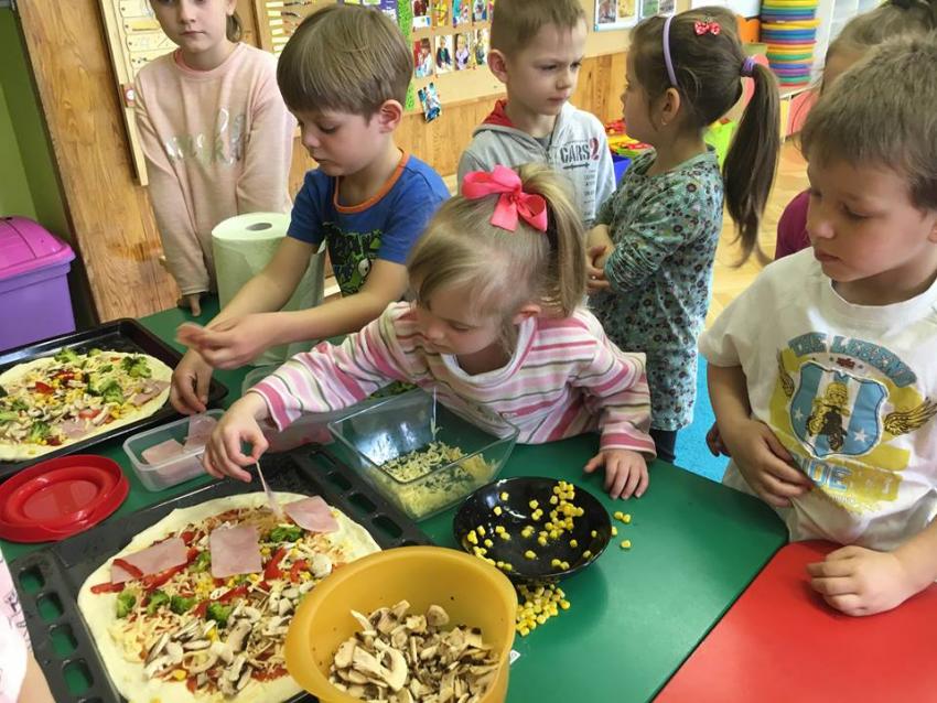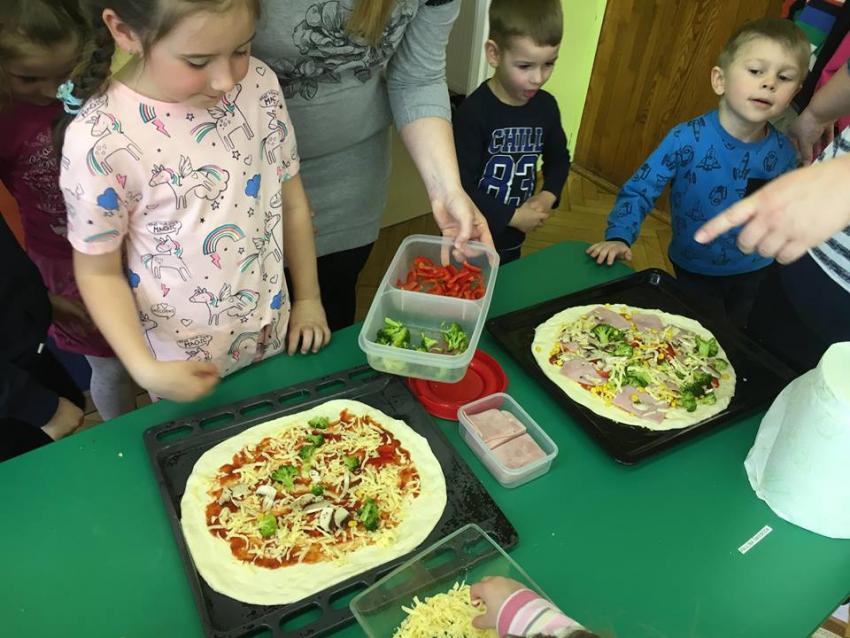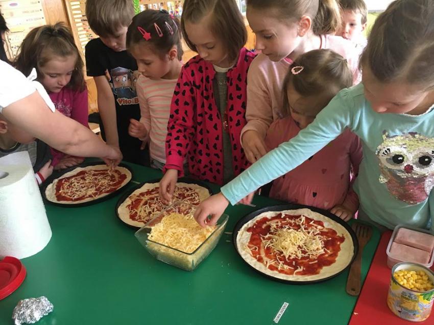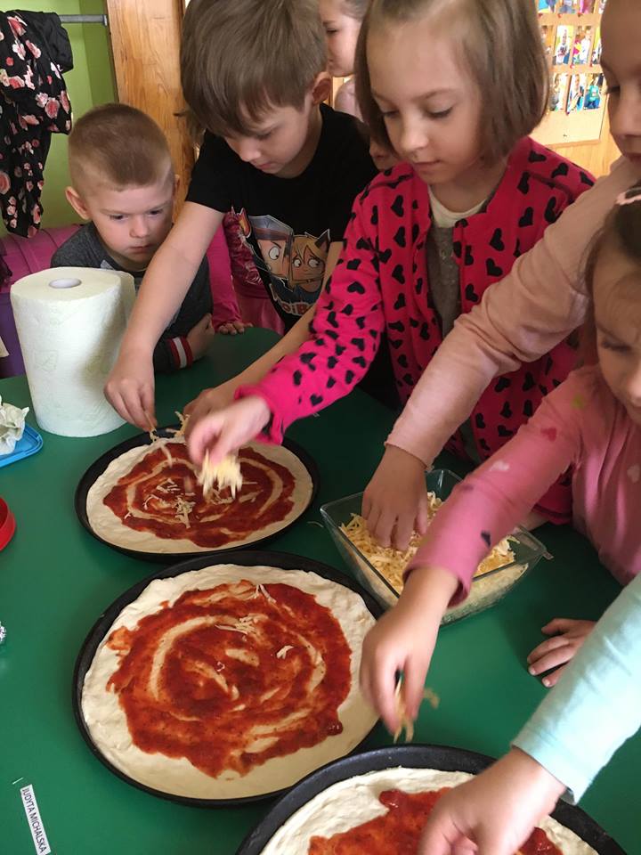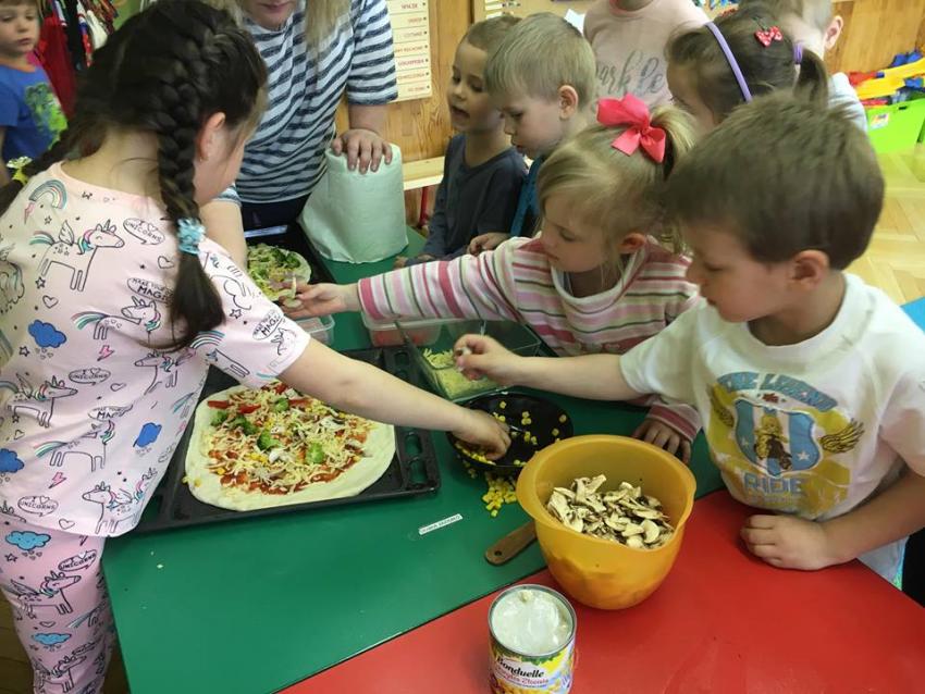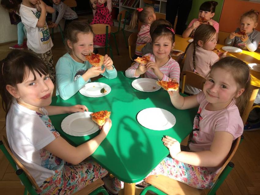 W czartek 12.04.2018r. gościliśmy w naszym przedszkolu tatę Nadii, który pokazał nam jak robi się prawdziwą pizze. Jak prawdziwy pizzerman podrzucał ciastem co sprawiało wiele frajdy dzieciom :) Każdy przedszkolak mógł przygotować pizzę. Pomysłów było wiele, a przy tym wyśmienita zabawa, o której słyszeli i którą bez wątpienia poczuli wszyscy w naszym przedszkolu. Dzieci z wielkim apetytem próbowały własnoręcznie przygotowaną pizzę i zgodnie przyznały, że była doskonała. Dziękujemy bardzo za przybycie do naszego przedszkola tacie Nadii- Panu Łukaszowi Ilnickiemu! :)