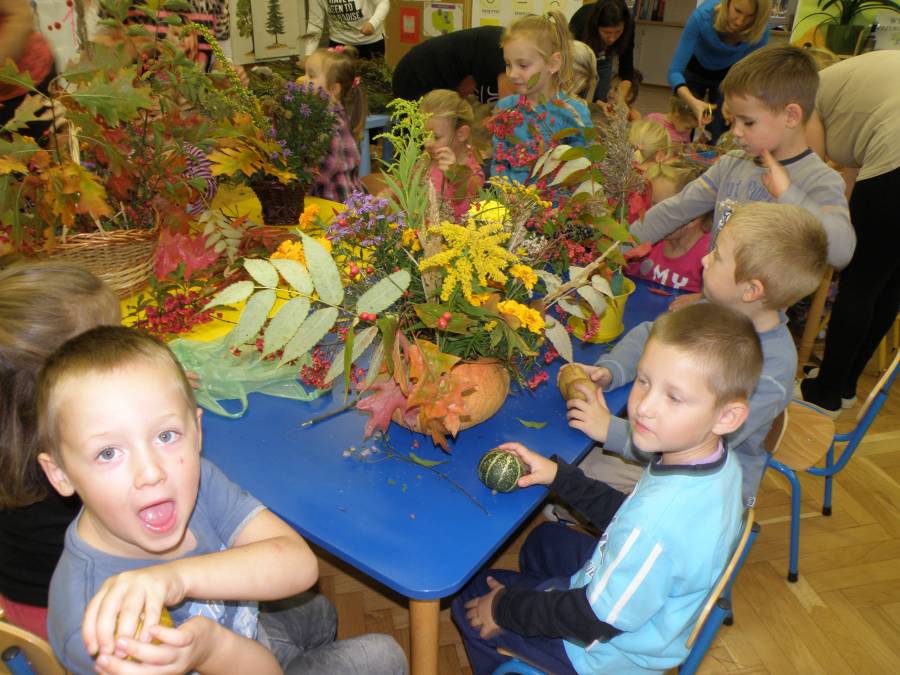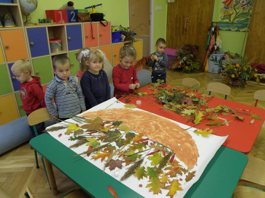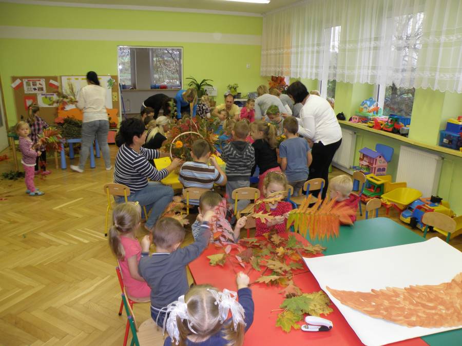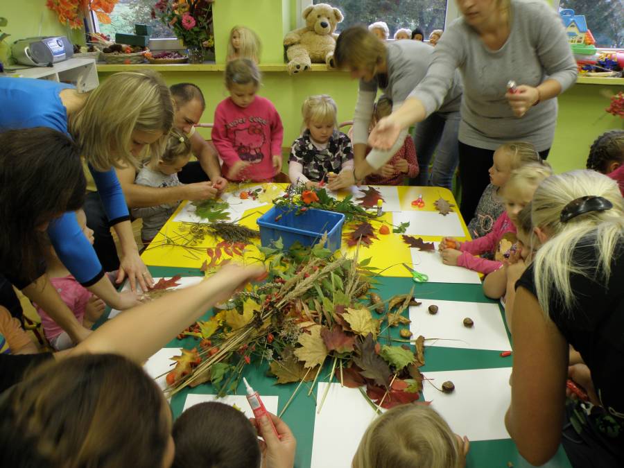 17.10.2014 r.  Krosnowice . Jesienne warsztaty plastyczne były wspaniałą zabawą i wspólną  pracą dzieci i rodziców.