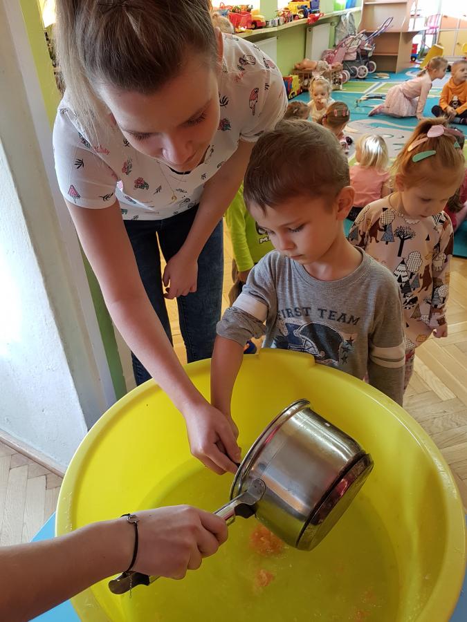 30.11.2018r. w naszym przedszkolu odbyła się Zabawa Andrzejkowa. Ten magiczny dzień był okazją do zapoznania się z tą ciekawą tradycją ludową. Zorganizowaliśmy różnego rodzaju zabawy, rywalizację taneczną oraz nie zabrakło także andrzejkowych wróżb. Każde dziecko dowiedziało się kim zostanie w przyszłości, chłopcy dowiedzieli się która z dziewczynek będzie jego prawdziwą koleżanką, ą dziewczynki poznały imię swego prawdziwego kolegi. Nie mogło zabraknąć również przelewania wosku. Wszyscy uczestnicy byli uśmiechnięci i zadowoleni. Po andrzejkowych zabawach i tańcach przyszedł czas na małe słodkości dla wszystkich dzieci.