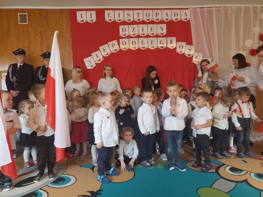 Bardzo dziękujemy przybyłym gościom za wspólne odśpiewanie hymnu oraz wysłuchanie piosenek i wierszy przygotowanych przez nasze przedszkolaki.