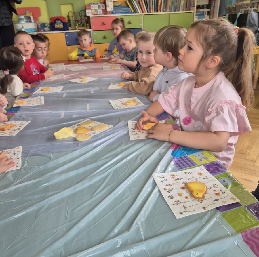 Warsztaty Wielkanocne poprowadzone przez Panią Sołtys Urszulę Borkowską. Przedszkolaki poznały tradycje i zwyczaje wielkanocne, zapoznały się z zawodem cukiernika oraz udekorowały przygotowane ciasteczka.