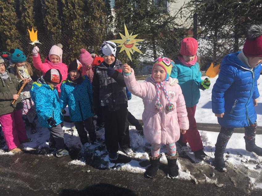 W dniu 21 marca nasze przedszkolaki przywitały wiosnę! Jesteśmy pewni, że głośno śpiewane piosenki usłyszała Pani Wiosna i zimie już wrócić nie pozwoli. Dzieci przygotowały wokalne prezentacje, które towarzyszyły symbolicznemu „topieniu Marzanny”. Było nam bardzo miło spotkać się razem, a kolorowe, samodzielnie wykonane przez dzieci kwiaty, słoneczka i bibułowe wstążki, niosły razem z wiatrem piosenki i wiosenne nastroje roześmianych przedszkolaków.