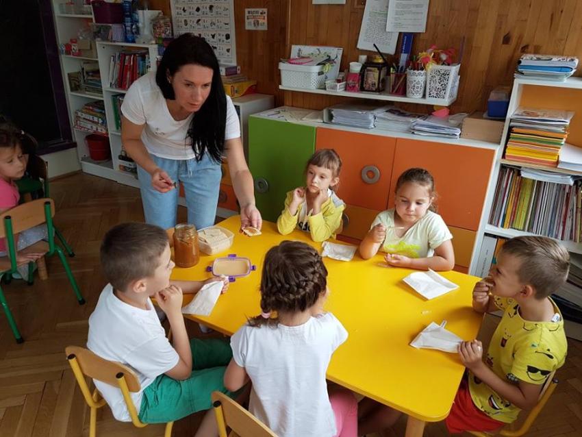 Kim jest pszczelarz? Czym jest ul? Co to pszczela rodzina? Dlaczego powinniśmy dbać o pszczoły? Jak pozyskuje się miód pszczeli?... Odpowiedzi na te oraz wiele innych pytań udzieliła nam Pani Krysia - mama Dobrusi - na warsztatach pszczelarskich w grupie starszaków.