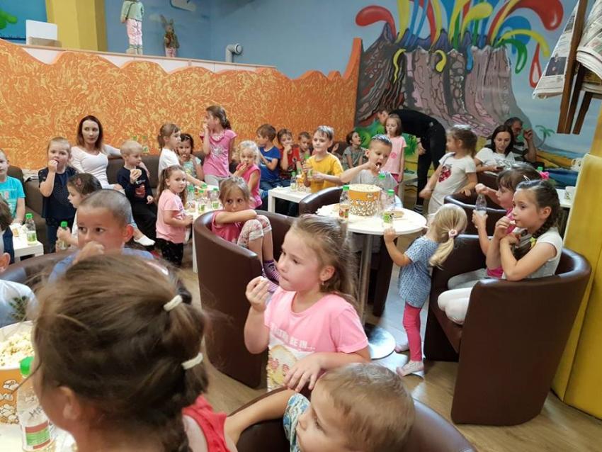 Ze względu na brak ładnej pogody wycieczka do wioski indiańskiej nie odbyła się. W zamian za to przedszkolaki po śniadaniu wyruszyły autokarem do Nowej Rudy do sali zabaw Bajkolandia. Tam (w ramach obiadu) zjadły bułeczki z żółtym serem, drożdżówki, popcorn, dostały napoje i oczywiście wybawiły się przez 2 godzinki. W drodze powrotnej niektórym dzieciom wyładowały się baterie i musiały podładować je drzemką Dzieciaczki wróciły zadowolone i oczywiście z pytaniem "kiedy pojedziemy znowu? :)