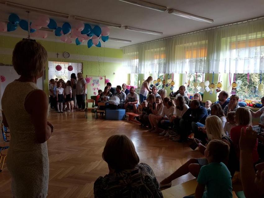 Przedszkolaki pięknie zatańczyły poloneza, zaśpiewały piosenki, a następnie otrzymały dyplomy i nagrody. W uroczystości uczestniczyli również rodzice, a także Panowie - Mirosław Pogoda, Mariusz Borcz i Marek Bogdał, którzy w imieniu Pani Minister Edukacji Narodowej Anny Zalewskiej wręczyli obiecane upominki dla przedszkolaków za występ artystyczny na otwarciu nowej siedziby ARiMR w Kłodzku. Przedszkolaki bardzo dziękują! Później przyszedł czas na podziękowania dla rodziców, którzy przez te wszystkie lata byli zaangażowani w działania na rzecz placówki i udzielali się bezinteresownie. Rodzice w podziękowaniu otrzymali dyplomy. Także dzieci wraz z rodzicami podziękowały pracownikom przedszkola za te wszystkie dni spędzone razem. Na koniec czekała na każdego niespodzianka, czyli lody