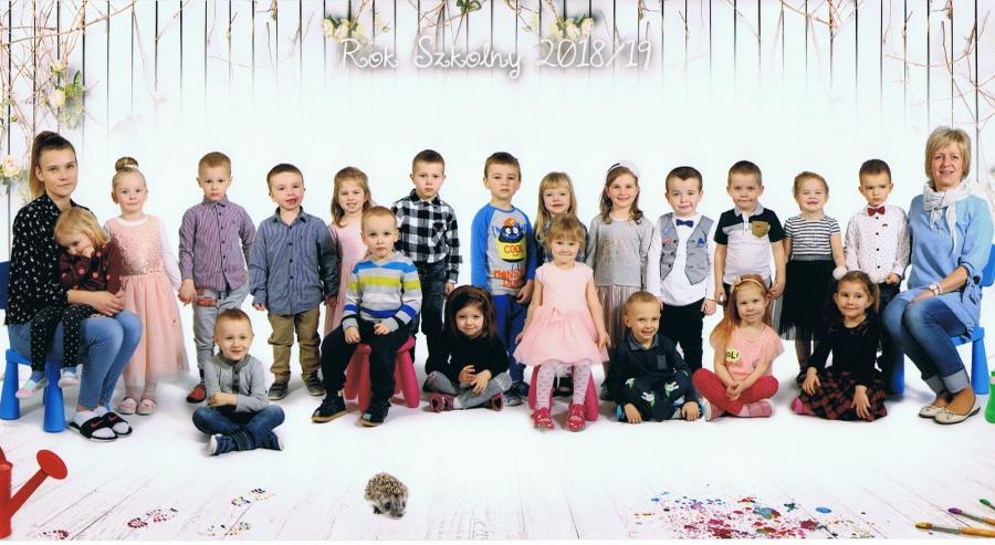 Nasze dwie grupy przedszkolaków w roku szkolnym 2018/2019.