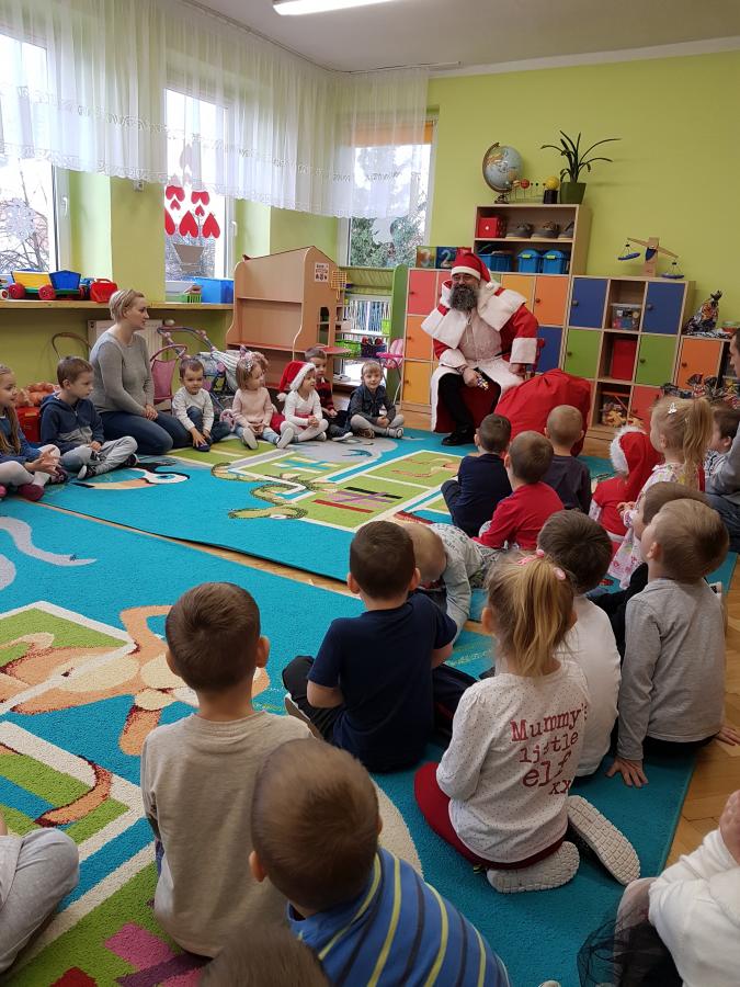 Tego dnia od samego rana dzieci z niecierpliwością wyczekiwały spotkania z Mikołajem, który wreszcie odwiedził nasze przedszkole przynosząc wspaniałe prezenty dla każdej grupy. Dziękując za prezenty przedszkolaki recytowały wiersze oraz śpiewały piosenki. Żegnając się z dziećmi Mikołaj obiecał, że na pewno wróci za rok. :-)