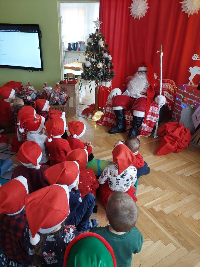 6 grudnia nasze przedszkole odwiedził bardzo miły i długo wyczekiwany gość. Miał czerwony strój, długą, białą brodę, dźwigał na plecach bardzo ciężki worek, a w nim prezenty. To nie mógł być nikt inny jak ŚWIĘTY MIKOŁAJ- niezwykle wesoły, rozmowny i chętny do wspólnej zabawy. Wszystkie przedszkolaki były bardzo grzeczne i otrzymały wspaniałe prezenty.
